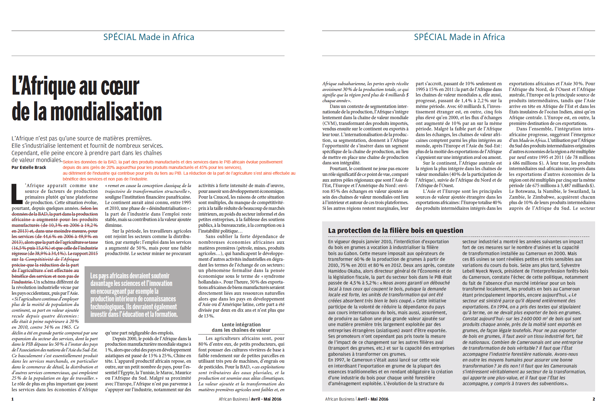 Un dossier pour African Business de début 2017 sur la production en Afrique ou « L’Afrique innove en marques« .